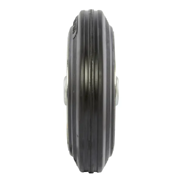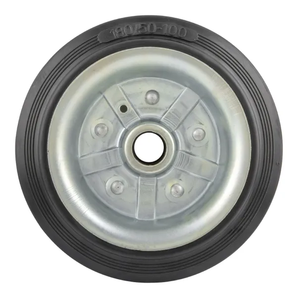 Durable Construction: Solid rubber tyre resists punctures and wear, mounted on a robust steel rim.