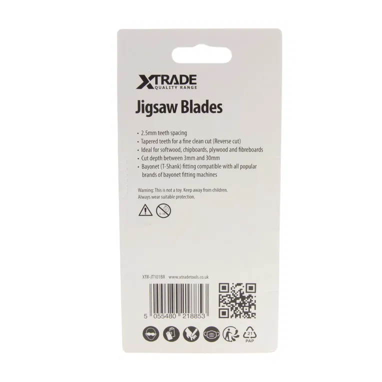 The XTRADE JT101B jigsaw blade wood set is built for accuracy, offering tapered teeth and CrV durability to deliver smooth, splinter-free cuts in softwood, plywood, fibreboard, and chipboard. These 100mm T-shank blades are perfect for fine joinery, cabinetry, and general woodworking where clean edges and controlled curves are essential.